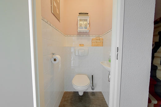 Entree, hal, trapopgang naar de eerste verdieping, trapkast en toilet. Het toilet is gedeeltelijk betegeld in neutrale kleurstelling en voorzien van een hangend closet en fonteintje. Vanuit de hal komt u in de zitkamer aan de voorzijde en aansluitend de eetkamer. De keuken is ruim, heeft veel kastruimte en is voorzien van alle benodigde inbouwapparatuur, zoals een koelkast (2021), vaatwasser, combi-oven/magnetron, 4-pits gaskookplaat met wokbrander en een afzuigschouw. Vanuit de keuken komt u middels een loopdeur in de bijkeuken. Hier treft u de aansluitingen voor de wasmachine en de droger, een werkblad/aanrechtblok en ontzettend veel kastruimte. Tevens toegang tot de achtertuin.